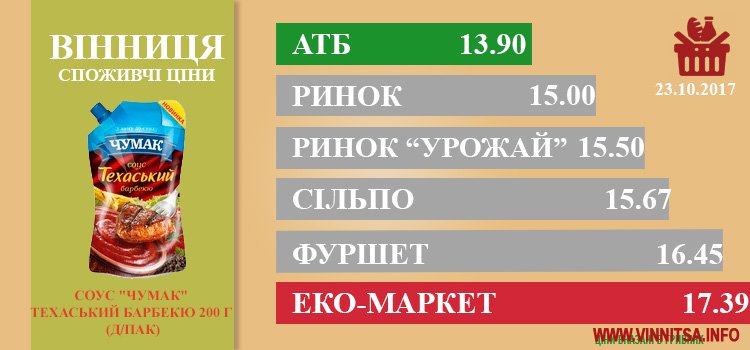 АТБ, пр. Юності, 51, ЕКО-маркет пр. Юності, 18, Сільпо, вул. Келецька, 105, Фуршет, вул. Е. Пікуса, 1-а , Ринок «Урожай», вул. Пирогова, 50 а, Ринок, вул. Некрасова, 48.