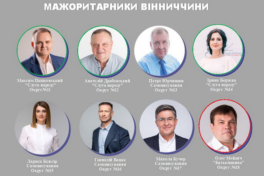 4 липня Центральна виборча комісія опрацювала 100% протоколів по мажоритарних округах Вінниччини. Отож, маємо вісьмох народних депутатів, що представлятимуть область у Верховній Раді нового скликання. Варто зазначити, що лише двоє з них буди нардепами минулої каденції – Микола Кучер та Петро Юрчишин.