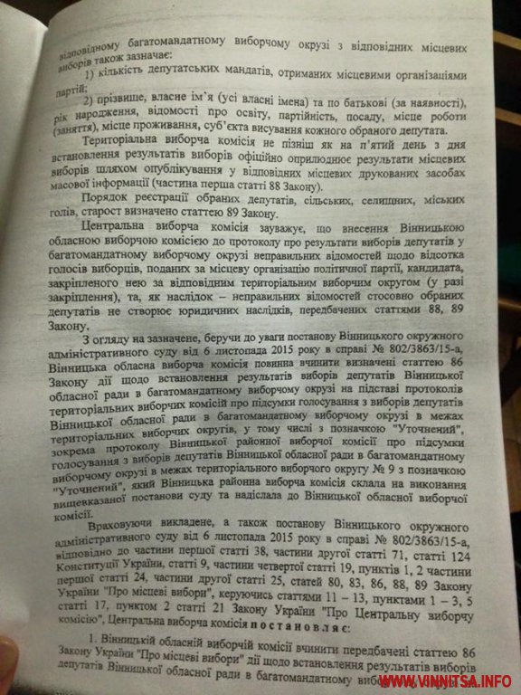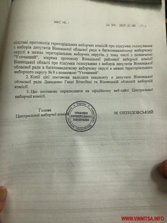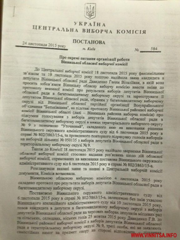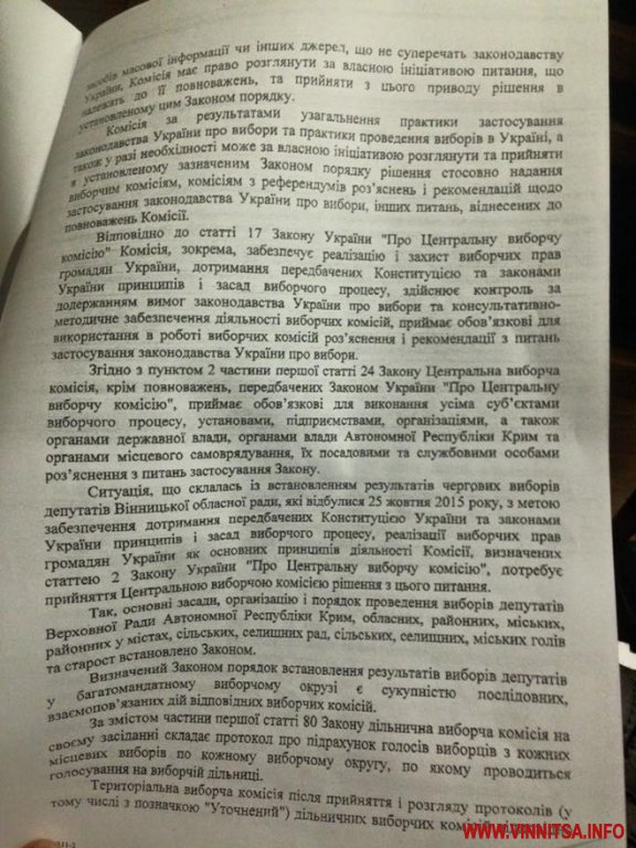 24 листопада комісія винесла постанову, яка зобов’язує ОВК прийняти уточнені протоколи. Засідання призначили того ж дня, проте кворум не зібрався. Отож, прийняття рішення перенесли на 18 годину 25 листопада.