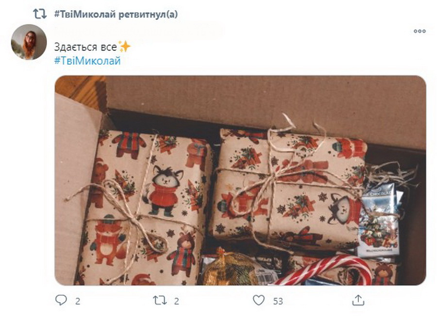 «Ти й уявлення не маєш, хто твій Миколай, що він тобі подарує. Водночас ти теж є для когось Миколаєм, створюєш казку для незнайомця, водночас допомогти дітям, заради яких і створили цей проект. Думаю, це і відчувають інші учасники», – додає Ірина.