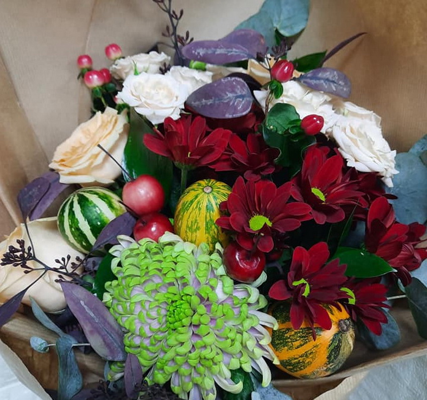 Восени серед Вінничан стали популярні квіткові композиції з елементами, які притаманні саме цій порі. Квіти міксують із натуральними овочами у мініатюрі та опалим листям з лісу.