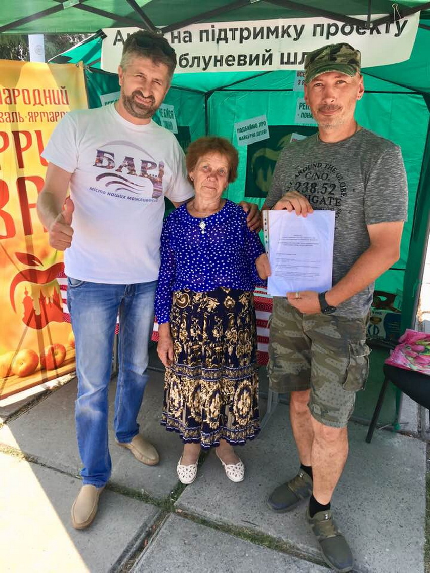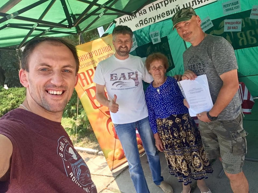 Сьогодні мер Бара Артур Цицюрський на площі біля пам’ятника Тарасу Шевченку збирає підписи громадян в підтримку «Яблуневого шляху».