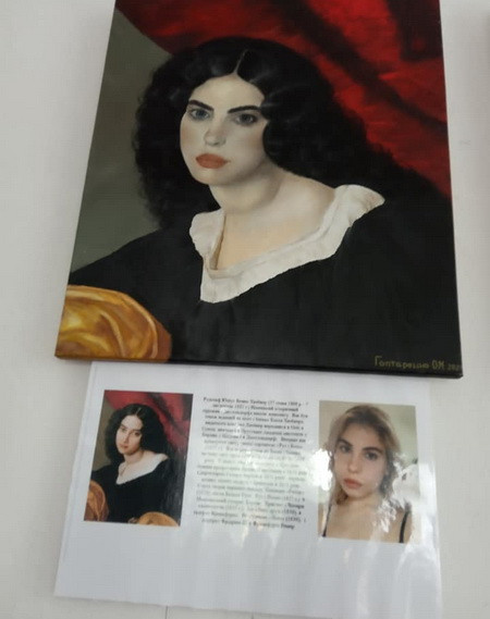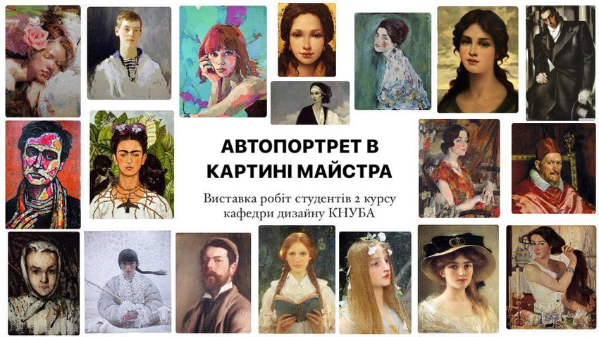 «Це експериментальний мистецький проєкт концепції художниці Лесі Рябчук, старшої викладачки кафедри дизайну КНУБА.У виставці представлено 30 робіт студентів другого курсу факультету дизайну КНУБА, об'єднаних назвою «Автопортрет в картині майстра». Молоді митці, заздалегідь обравши картину відомого майстра, на основі шедеврів художників різних епох, «увійшли» в них, відтворивши своє уявлення про себе та світ навколо», - повідомляє Вінниця.info Світлана Гуслякова, місцева жителька, співзасновниця ГО «Інститут розвитку Брацлавщини».