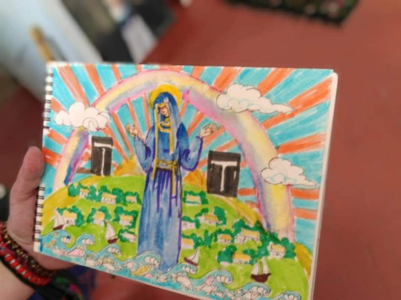 Наразі автори виставки колективно розмальовують панно на приміщені місцевої селищної ради. Там з’явиться абстрактна картина, яка зображає родовід: у центрі образ Божої Матері, над якою веселка у сонячних променях. Діва Марія стоїть над містом та молиться.