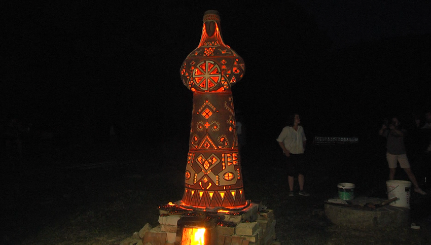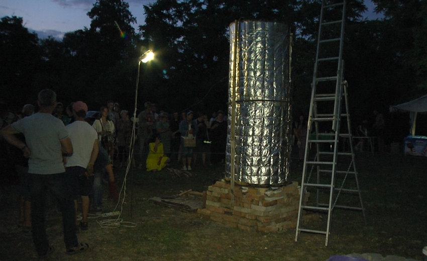 «Це специфічний випал. Він дуже повільний, дуже лагідний. Маємо досягти температури у тисячу градусів. Не менше тисячі градусів. Тому, що цей виріб міг витримувати температурні перепади. Тому «черепок» має бути добре спечений. Тобто, сама структура. А починалось все з ескізу. По ньому виготовляли у матеріалі – спеціальної шамотної глини. Це така керамічна маса. Талі був процес сушки. Напередодні ми приїхали на місце, облаштували топку», - каже Вінниця.info Василь Рижий, співавтор виконання роботи, представник громадської організації «Керам АРТ-місто».