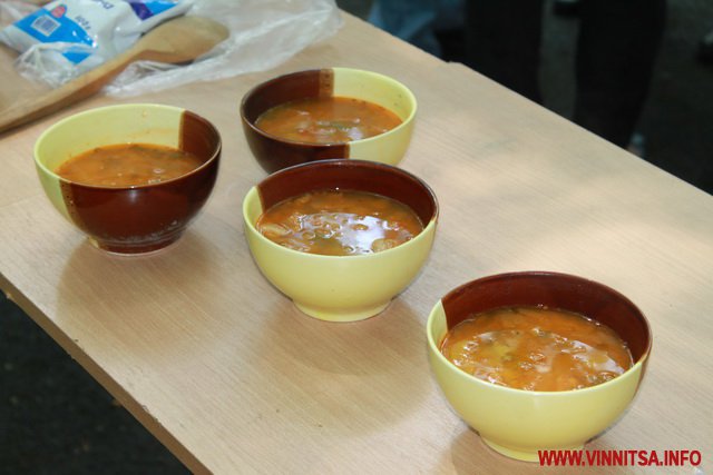 Представники служби з надзвичайних ситуацій приготують борщ, куліш та солдатську кашу, військові – кашу та чай, спілка байкерів – обід по-байкерськи. Ресторан «Мак-Лауд» частуватиме стравою шулюм, а спілка воїнів-афганців – пловом. Страви на вогні приготують й навчальні заклади міста. Так, торговельно-економічний коледж пригощатиме вітамінним борщем та чумацькою кашею, а Центр професійно-технічної освіти та харчових технологій – пісним борщем та кашею.