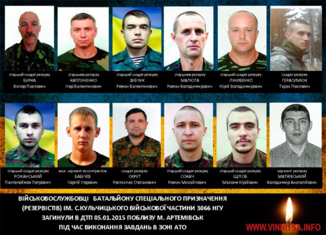 На сайті відомства опубліковано імена та звання 12 військових, які належали до батальйону спеціального призначення ім. С. Кульчицького військової частини №3066 Національної гвардії України.