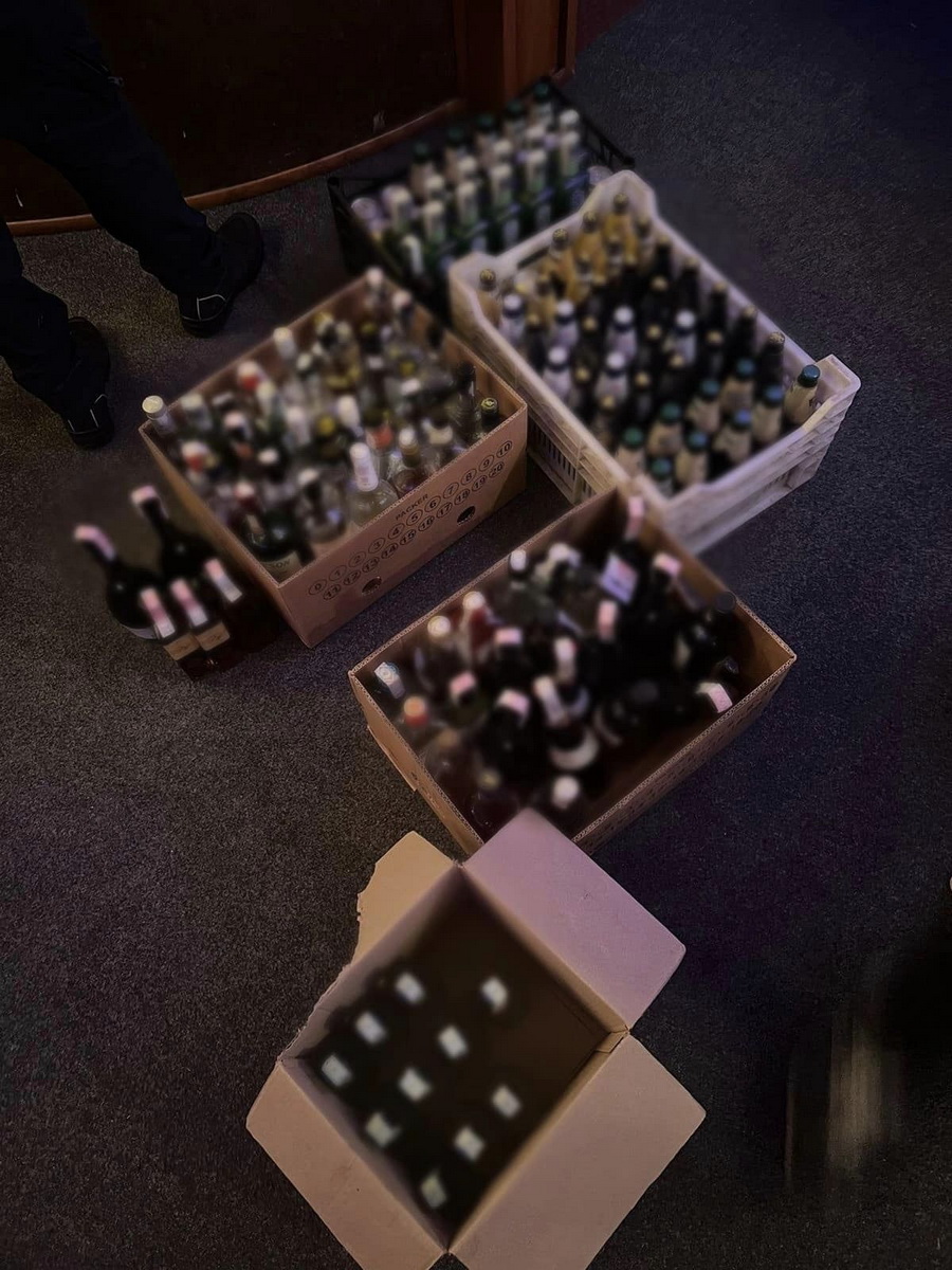 З приміщення розважального закладу правоохоронці вилучили 58 ємностей з ваговим тютюном та 128 пляшок алкоголю на загальну суму 44 800 гривень.