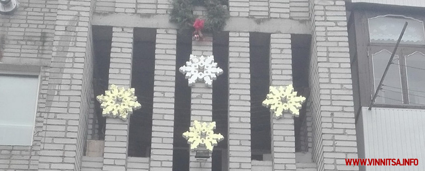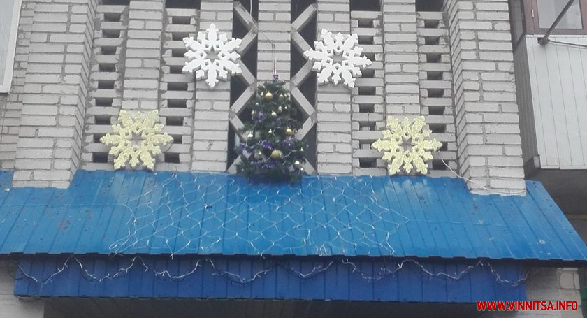Напередодні зимових свят у містечку Гнівань на Вінниччині, мешканці вирішили прикрасити п’ятиповерховий будинок новорічною інсталяцією. Самостійно, за власні кошти. Вінниця.info розшукала ініціатора. Нею виявилась місцева Любов Дмитрівна, вона старша по під’їзду, де і встановили сніжинки, тематичні цифри «2021» та прикрасили по центру ялинкою та різдвяним віночком.