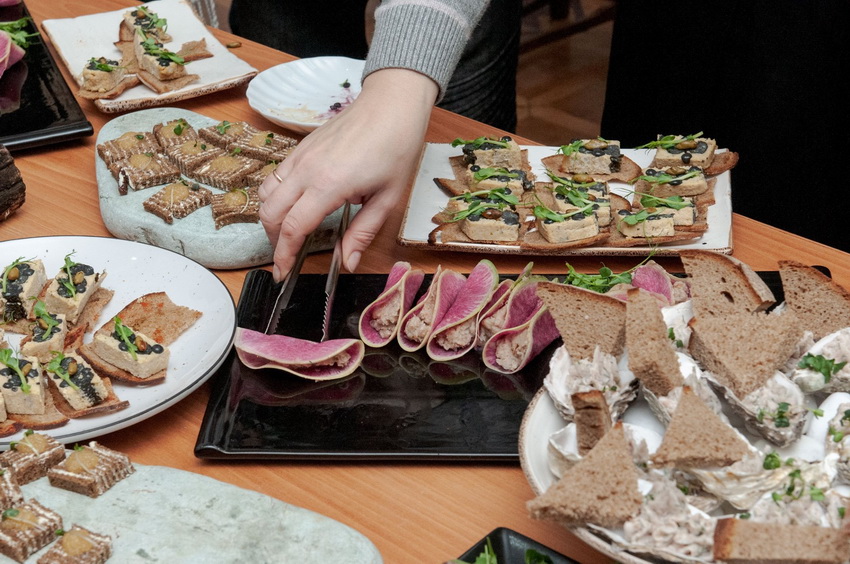Справжньою родзинкою стала дегустаціями страв подільської кухні від шеф-кухаря, митця у кулінарії Віктора Палевського. Відкриття буквально видалося смачним: рулетики зі щуки з чорнилами каракатиці; намазанки з хрону, бузини та гірчиці з бузиновим оцтом; форшмак з копченої дунайки у тоненькому слайсі редьки; «бородинський наполеон» з ікрою щуки та оселедця та багато іншого», – йдеться в дописі.