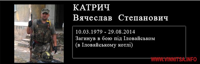 В’ячеслав Катрич насправді похований у Запоріжжі на алеї Слави, як тимчасово невпізнаний солдат. Загинув він 29 серпня 2014 року в Іловайському котлі. У бійця залишилася дружина і 10-річний син.