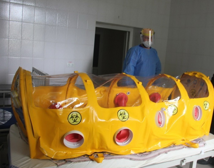 Бокс важить 16 кг, він являє собою герметичну капсулу, обладнану приладом для подачі кисню, компресором, бактеріальним фільтром для знезараження повітря. Також у капсулу вмонтовані рукавиці-манжети, що дозволяє медпрацівникам проводити маніпуляції без контакту із хворим.