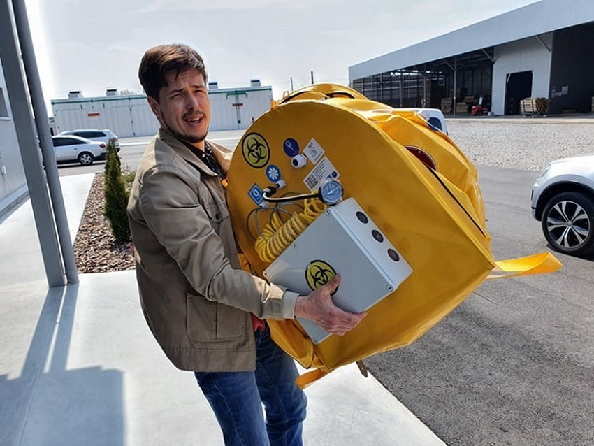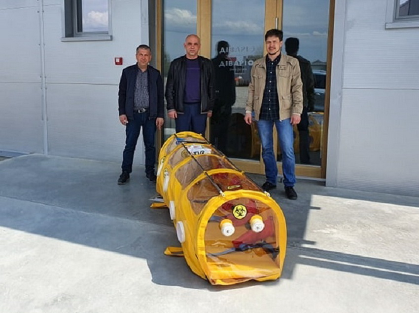 «Такий бокс використовують для транспортування інфекційних хворих з закладу в заклад, - розповідає головний лікар Калинівської ЦРЛ Владислав Головащенко. – Він убезпечує інфікування медпрацівників під час транспортування хворого у автомобілі швидкої допомоги».