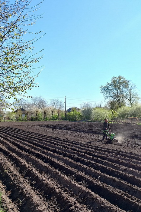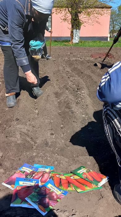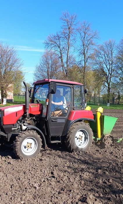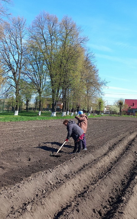 На присадибній ділянці та у садку працюють усім колективом. А вчитель трудового навчання Сергій Українець власною технікою допомагає обробляти город.
