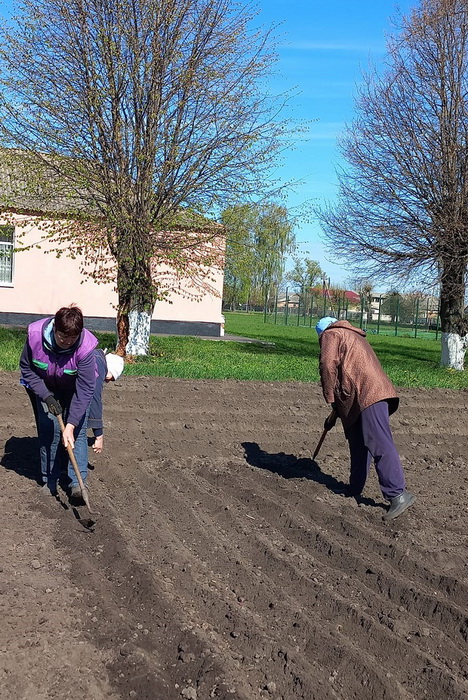 «Кілька днів тому ми висадили три сорти картоплі, квасолю, висіяли моркву, столовий буряк, огірки. Нині посадили триста саджанців капусти. Також вже двічі обробили від шкідників та хвороб шкільний садок. Цьогоріч ми ще висадили дев’яносто яблунь і тридцять саджанців фундука. Також маємо смородину, калину», - каже Калинівській міській раді очільниця навчального закладу Олена Костюк.