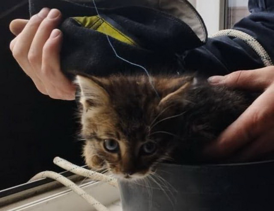 «Наш рятувальник підліз до місця, за допомогою рятувальної мотузки та інших підручних засобів, йому вдалося забрати кошеня. Тваринка, хоч і маленька, відчула, що їй хочуть допомогти. Та сама пішла до рук», - зауважив Вінниця.info Олександр Кутовий, з ГУ ДСНС України у Вінницькій області.