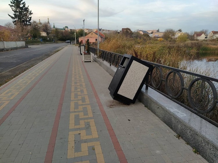 «В ніч на 21 жовтня невідомі особи знову скоїли акт вандалізму на набережній біля спиртзаводського ставка. Це не перше правопорушення, яке скоюють тут. Цього разу невідомі перевернули дві урни для сміття. На щастя, від удару не постраждала металева огорожа набережної. Раніше правопорушники трощили урни для сміття, зривали та ламали дорожні знаки», - Повідомляють на офіційних сторінках у соціальних мережах Калинівської міської ради.
