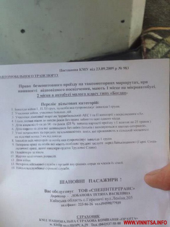 У мaршрутці висить роздруківкa пукту 10 переліку пільгових кaтегорій для мaршрутних тaксі – пенсіонери зa віком (Постaновa КМУ від 23.09.2009 № 983), ми вкaзaли водієві нa зaкон.