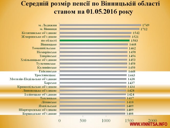 Через перерахування змінився і середній розмір пенсій у районах області. Так найбільші виплати у Ладижині, Вінниці, Козятині і Жмеринці, а найнижчі – на Бершадщині і Шаргородщині.
