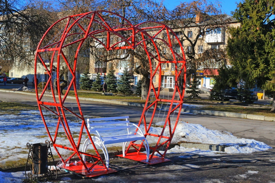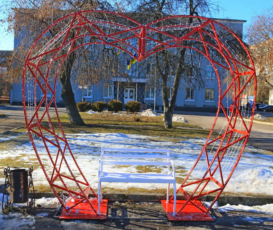 У центрі Козятина для місцевих та гостей міста облаштували нову фотозону. Лавочку з аркою у формі серця встановили навпроти Будинку культури. І присвятили відкриття до Дня закоханих.