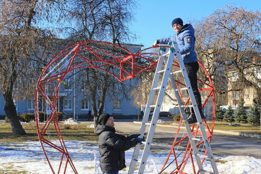 «Велике червоне серце, що яскраво світитиметься ввечері, знаходиться у середмісті – на площі Героїв Майдану. Сьогодні його монтували працівники міського будинку культури», - зауважили у Козятинській міській раді.