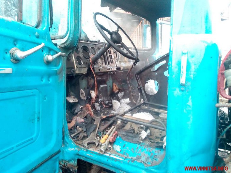 Вогнем знищено внутрішнє оздоблення кабіни автомобіля.
