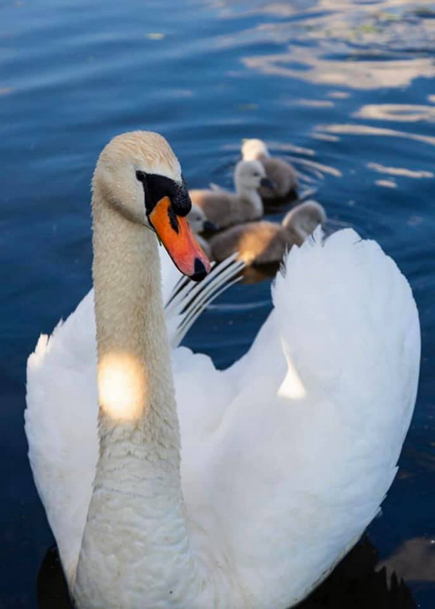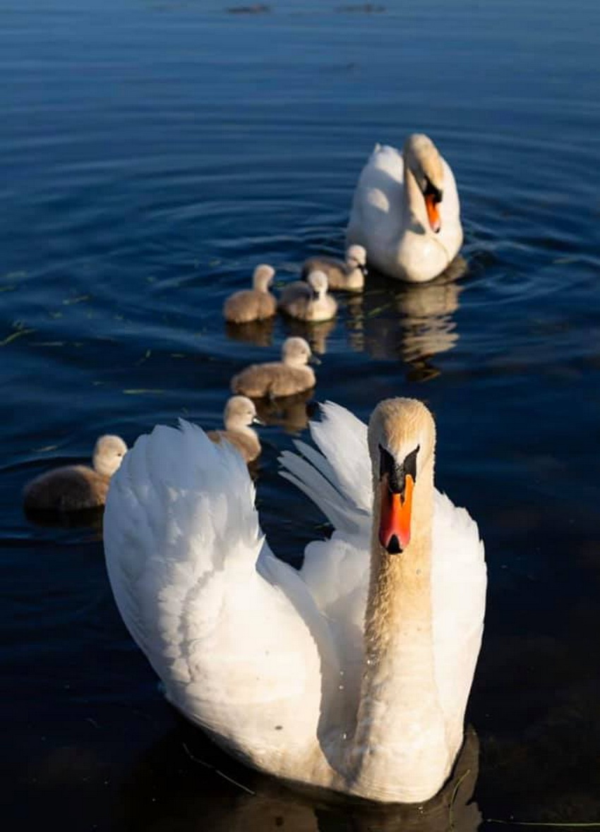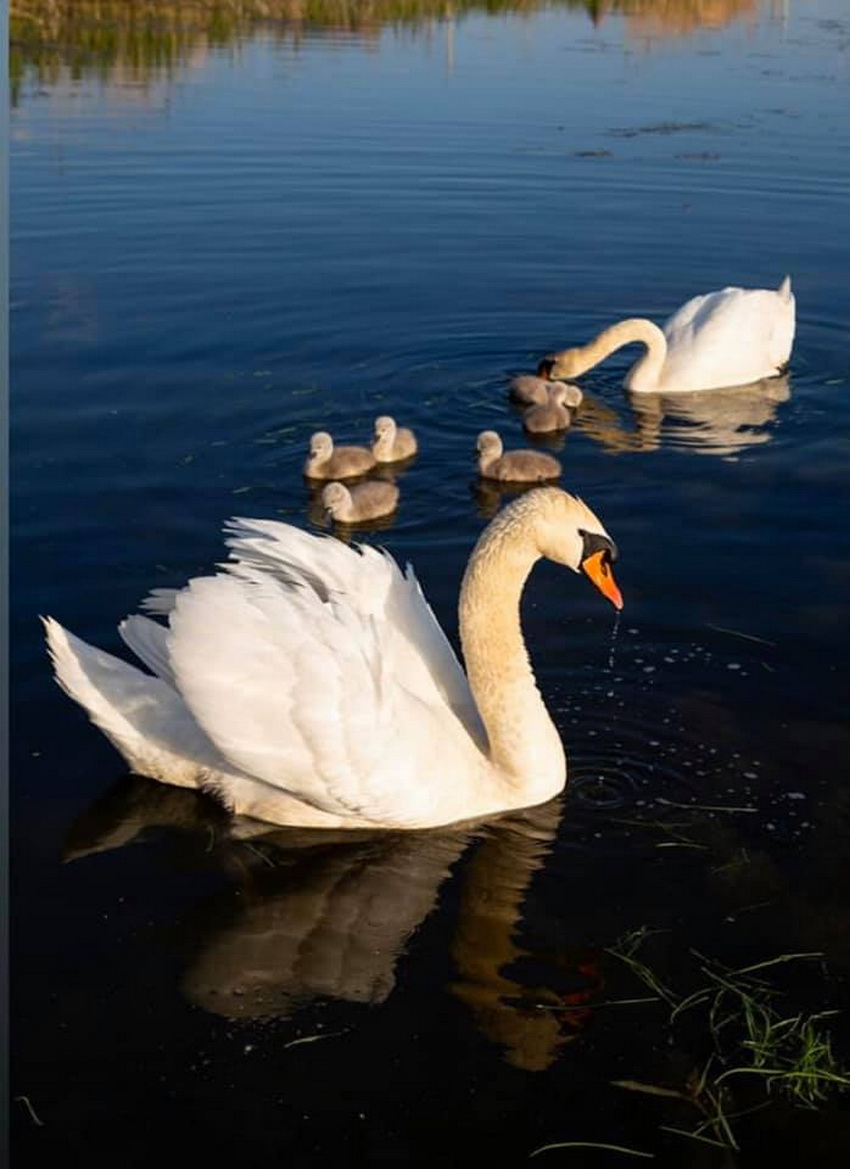 Кілька днів тому у сімейства лебедів, що мешкають на Родинному озері у мікрорайоні Тяжилів, з’явилося поповнення. Вилупилися шість пташенят. Вони ще зовсім маленькі, сірі і пухнасті. Разом з батьками плавають по водоймі та не бояться наближатися до берега.