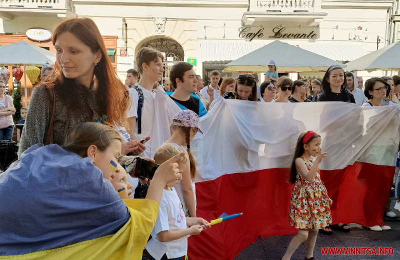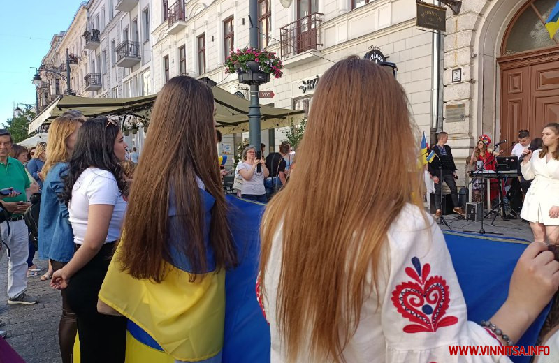 На завершення організатори заходу попросили всіх охочих взяти участь у флешмобі та створити серце з синьо-жовтого та біло-червоного кольорів, що символізують українсько-польську дружбу.