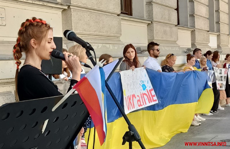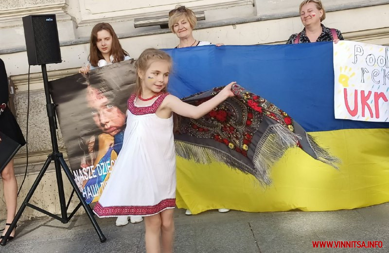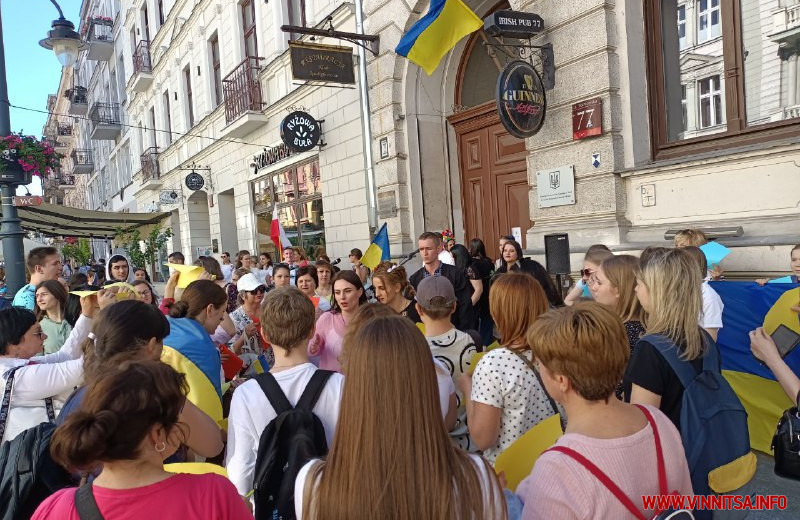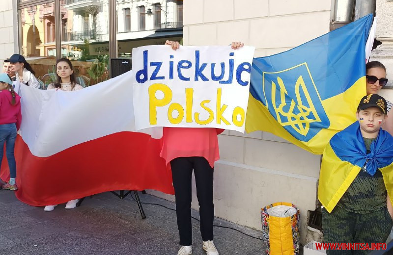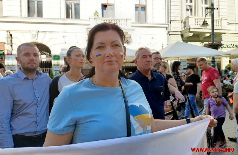 До демонстрації долучилися й самі поляки, щоб висловити свою солідарність з українцями. Учасники акції зібралися біля посольства на центральній вулиці міста. Багато хто був одягнений у вишиванки та патріотичний одяг. У руках тримали прапори України і Польщі, а також плакати із закликами зупинити війну та врятувати Україну.