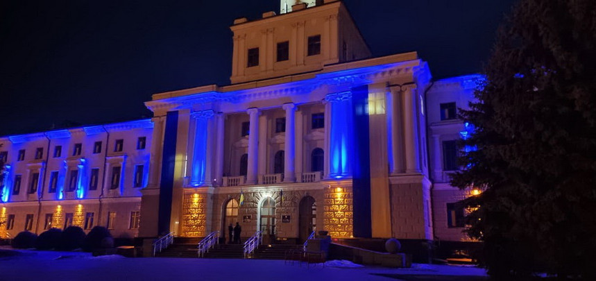 Напередодні, 16 лютого у День єднання, по всій Україні підсвітили адмінбудівлі кольорами українського прапору. На Вінниччині жовто-блакитними кольорами засяяло приміщення обласної державної адміністрації та обласної ради.