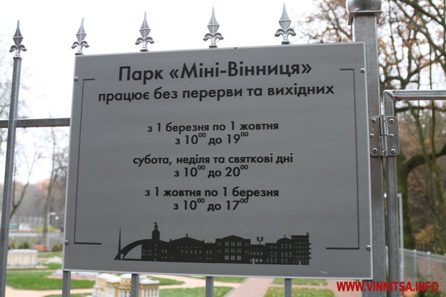 «Ми будемо працюємо над тим, щоб був для відвідувачів зручний графік, навіть плануємо взимку працювати. Графік роботи змінився, оскільки в понеділок у парку вихідний, то у «Міні Вінниці» теж буде вихідний. Якщо потрібно буде зробити екскурсію групи і прийдуть бажаючі, то ми обов’язково відкриємо. А у всі інші дні працюємо з 10 години», - каже І. Любовський.