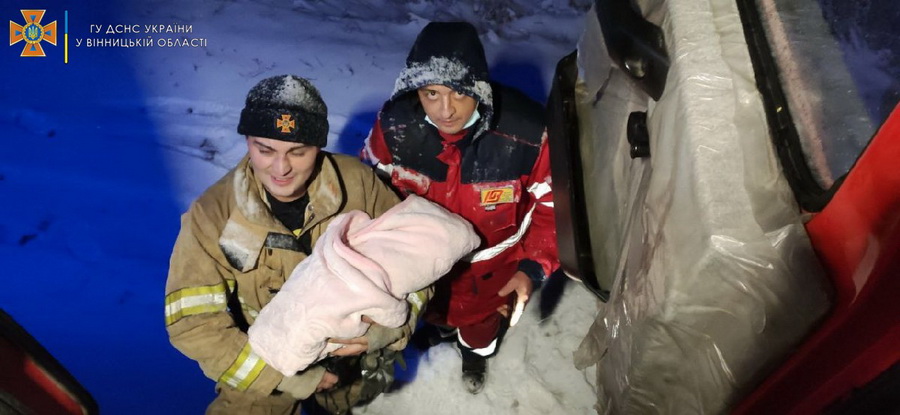 Ввечері 25 грудня, у селі Шлишківці, що на Вінниччині, автомобіль «швидкої», який мав довезли маму з немовлям до лікарні, з’їхав з дороги. Рятувальники Вінницької області допомогли доставити маму з дитиною до лікарні.