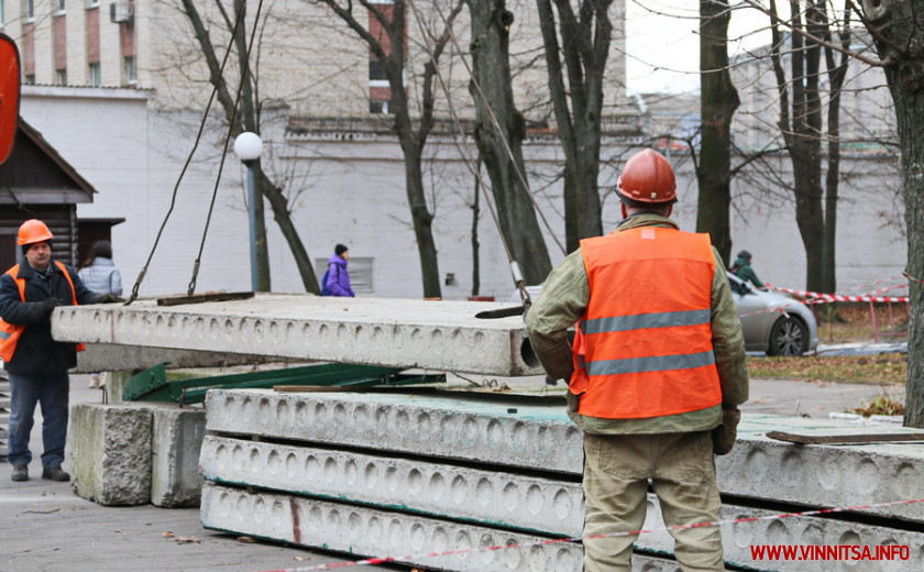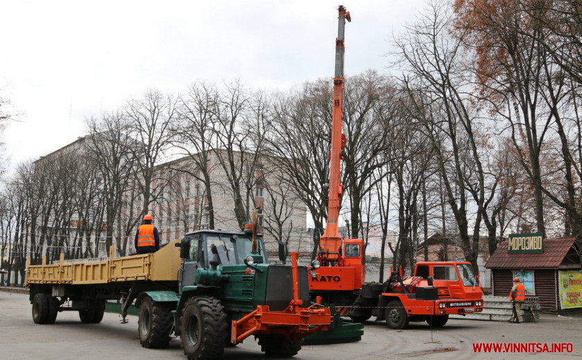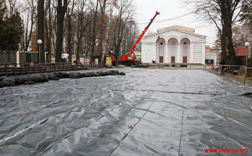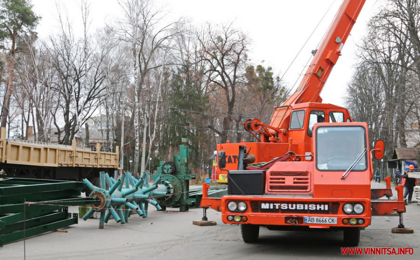 У Центральному парку Вінниці почали встановлювати металевий каркас для головної ялинки. Біля літнього театру працює кран, зараз влаштовують бетонні блоки.
