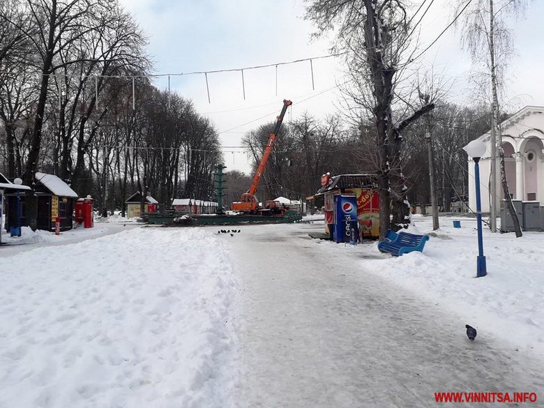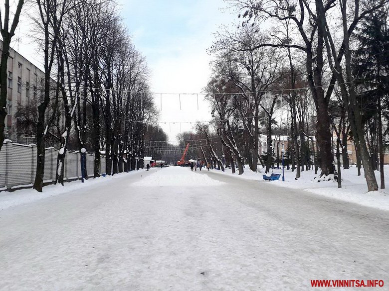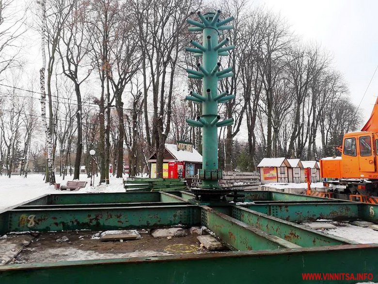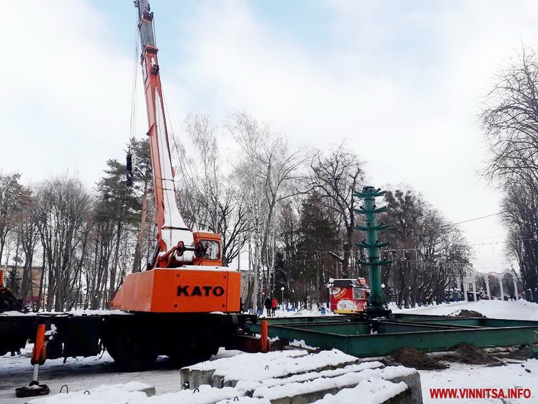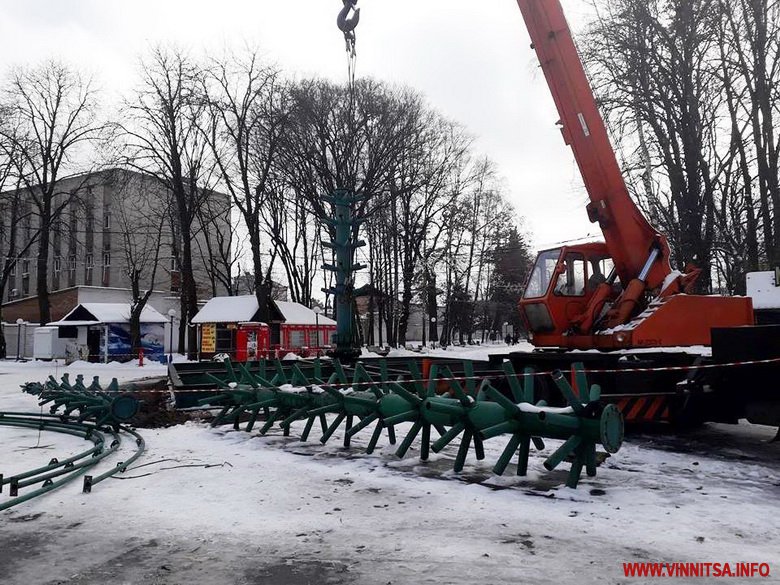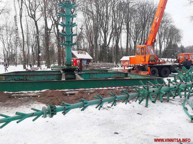4 грудня у Центральному парку Вінниці почали встановлювати металевий каркас для головної ялинки. Біля літнього театру працює кран, частину конструкції вже змонтували. Також привезли плити для укріплення її основи.
