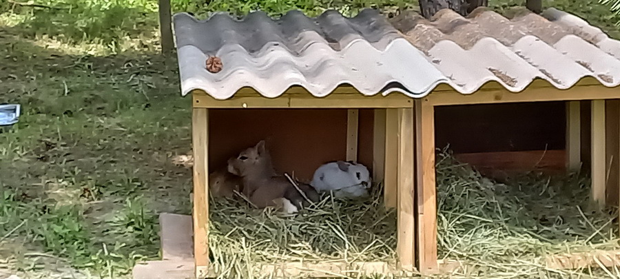 «Освоїлись тварини на новому місці доволі швидко. Кролики і патагонська мара обживають будиночок. Кенгуру обережно вивчає нову територію, мандруючи вольєром. Час від часу тварин можна побачити біля кормушки. Тут завжди є щось смачненьке. До раціону валабі, мар і кроликів входять сіно, морква, комбікорм та яблука», - йдеться у повідомленні.