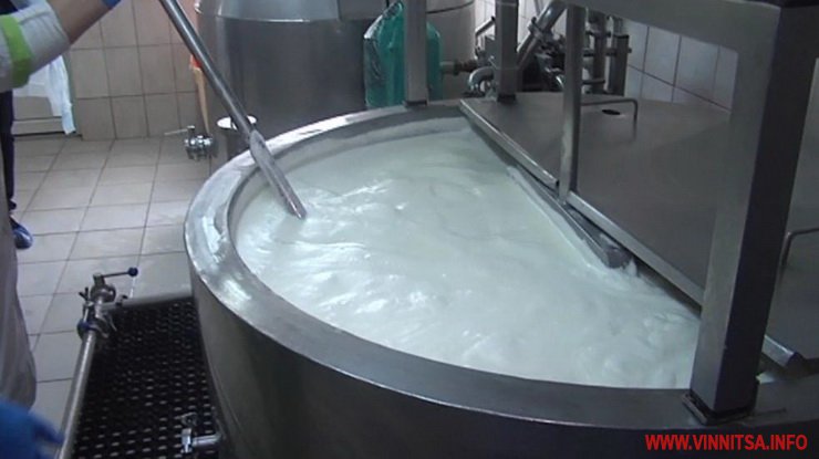 Творог вимішується вручну. Для досягнення рівномірної температури по всій ємності. Відігрівається до температури 53-54 градуси. Потім охолоджується і відкидається у лавсанові мішки.