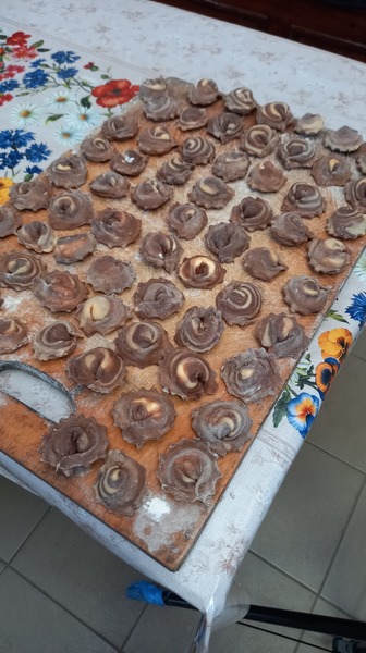 “Тому ми спробували із м'яким сиром та родзинками. А якщо у тісто додавати сік моркви, чи буряка, чи петрушкою з кропом, можна й шпинат, то “мармурове” тісто набуває різнокольорових відтінків. І начинка вже у таких може бути також різна. З м'ясом, лівером, картоплею, чи капустою. Пані Люся їх постійно ліпить та пригощає. Як гостей, так і родину. А родина у неї велика. Троє дітей подарували 12 онуків та вже двох правнуків”, - зауважує пані Мирослава.