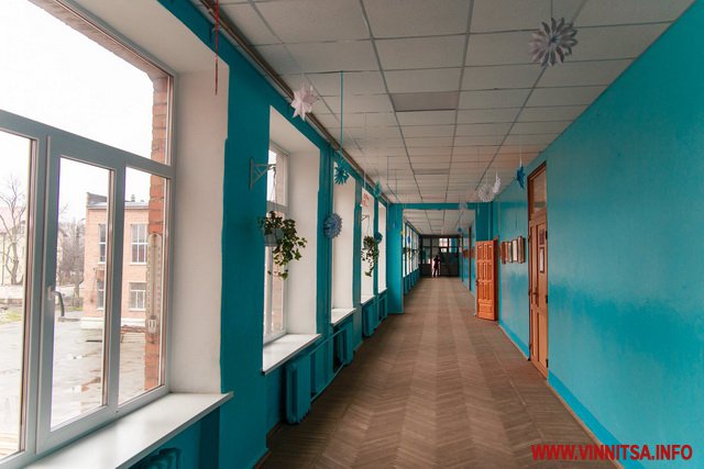 З настанням тепла підрядник приступить до робіт з утеплення фасаду та підсилення стін. Також має замінити дверні блоки та довстановити енергозберігаючі вікна. А нові вже стоять у коридорах, спортзалі, їдальні, актовій залі.