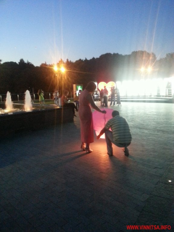 Спочатку деякі ліхтарики не піднімалися у небо, але це не зіпсувало атмосферу, всі були з чудовим настроєм, тому до такої дрібниці віднеслися з гумором. На площі грала романтична музика, чутно було шум фонтанів та сміх вінничан.