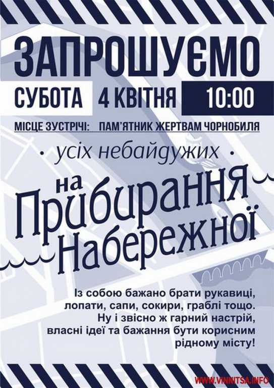 У суботу, 4 квітня вінничан запрошують на прибирання набережної.