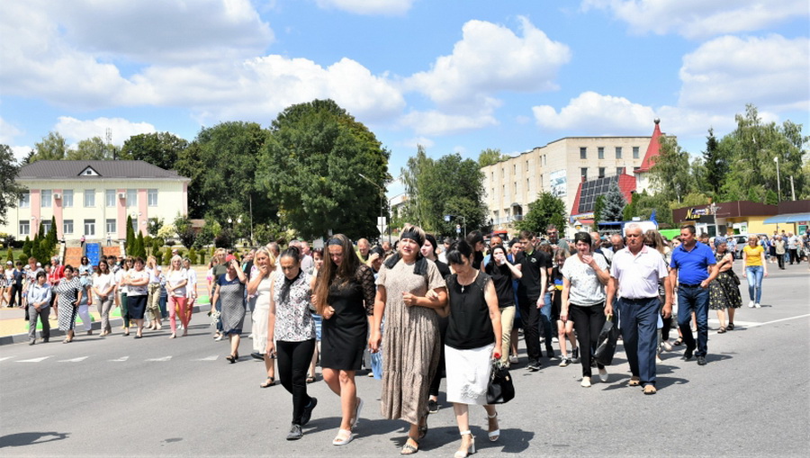 На запити великої групи земляків та побратимів було ідентифіковано і через чотири місяці направлено на поховання. І вчора, 20 липня, тіло Героя доставили у Тростянець. Тут живим коридором зустрічали захисника кілька сотень людей.