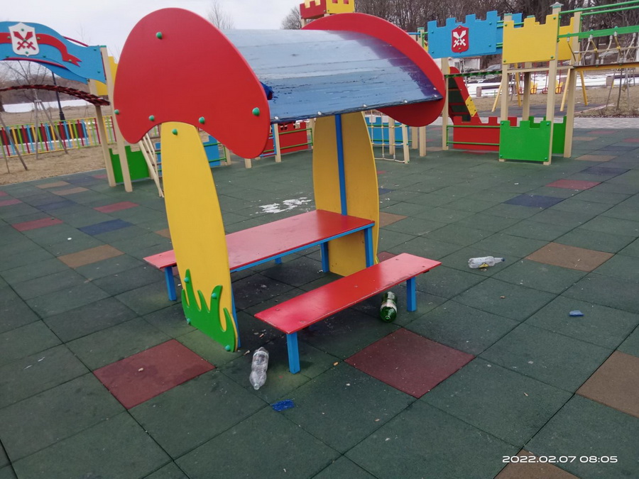 «Своїми розвагами юнаки зруйнували накриття над столиком, розпивали алкогольні напої, після чого розкидали сміття по всьому майданчику, влаштували змагання з боротьби на газоні та перегони на дитячих гірках та парапетах, залишили свої сліди та потертості на покритті, столику та бортиках дитячого майданчика», - перераховують у Тростянецькій селищній територіальній громаді.