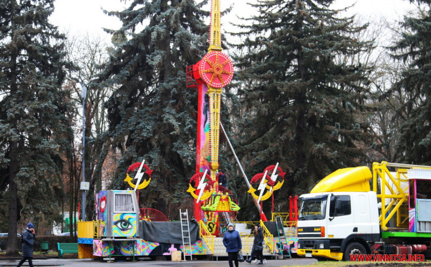 Завершують прикрашати головну ялинку міста. Нині чіпляють іграшки. Також роблять ковзанку, яку заливають льодом. Вперше у Вінниці буде сноутюбінгова гірка в парку. Зараз там монтують укріплення. А на Фонтанній площі почали розгортати луна-парк.