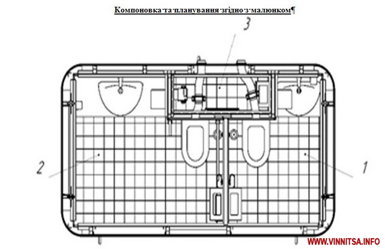 Відповідно до тендерної документації, підрядник повинен облаштувати електропостачання, водопостачання та каналізацію до вбиральні. Також прописані вимоги до туалету модульного типу: