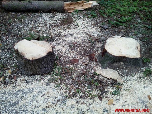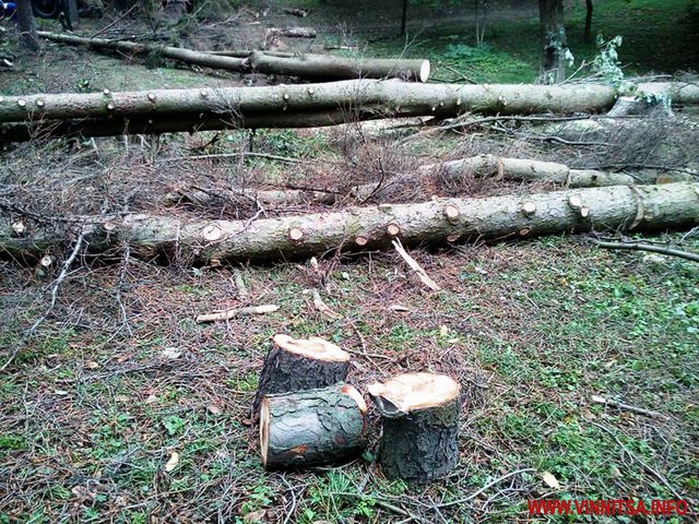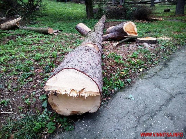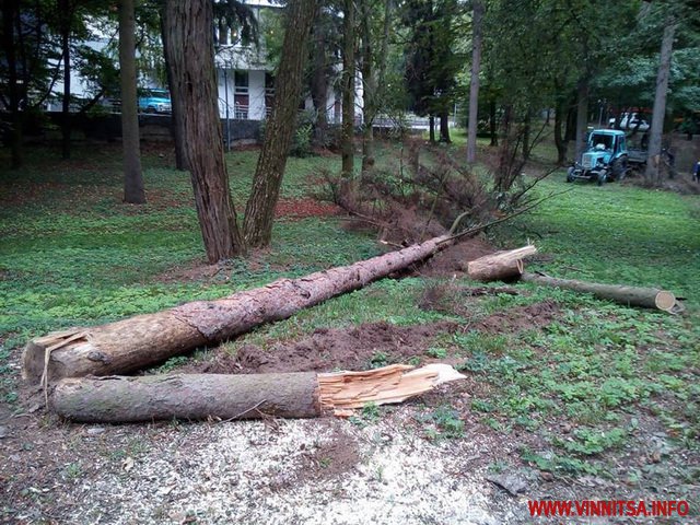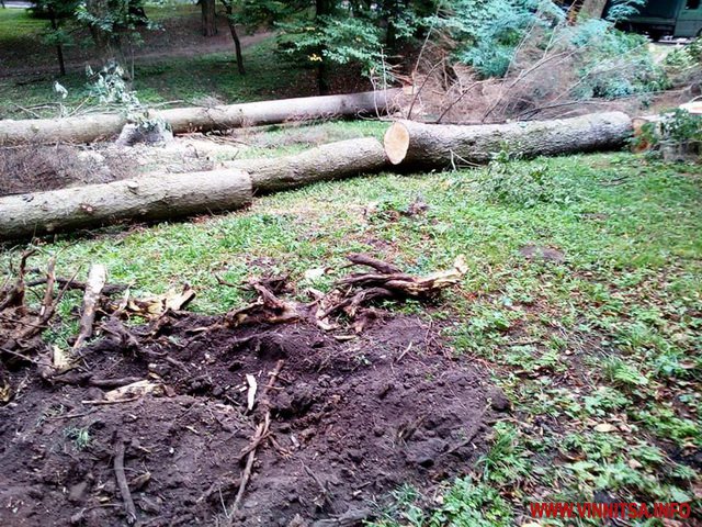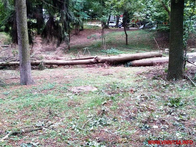 Окрім них, зрізали і кілька листяних дерев, що росли поруч «Міні Вінниці» і мали аварійний стан.