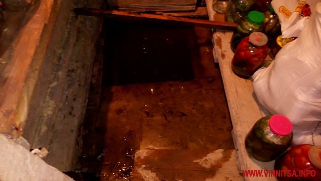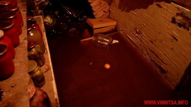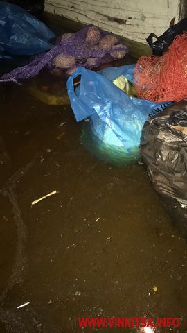 У Вінниці на Магістратській, 9 затопило підвали, якими користуються жителі двох будинків. Рівень води сягає від 30 сантиметрів до 2 метрів. Власники самотужки з гарячої води діставали закрутки, картоплю, яблука, капусту та інші овочі.
