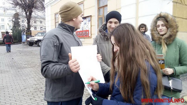 «Подібна акція проходить по всім містам України. У ній також беруть участь блогери та журналісти, які у соціальних мережах викладають фото із своїми запитаннями. Ми також вирішили долучитися. І спитати думки у пересічних вінничан. Люди підходили до нашого стенду, або ми ходили по центру міста з ватманами і пропонували у письмовій формі ставити питання президенту. За чотири дні, як ми проводимо цей захід, назбирали тисячу запитань. Завтра їдемо відзначати річницю від початку Революції гідності у Київ. Питання від вінничан покажемо усім бажаючим. Аби і Порошенко їх зміг прочитати, ми їх привеземо до нього додому. Звісно, нас не пустять в гості. Тому ватмани ми прикріпимо до його паркану», - розповів вінницький організатор акції «Питання пану президенту» Серій Сидоренко.