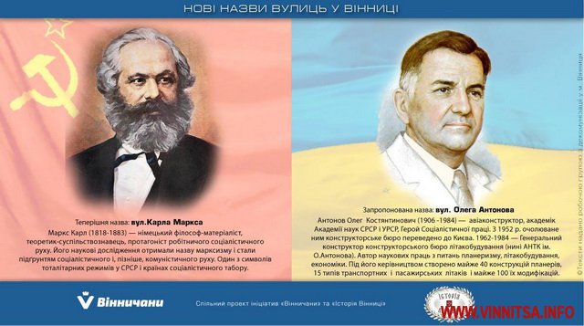 У Вінниці фахівці пропонують перейменувати вулиці Чкалова, Карла Маркса і Фабриціуса.