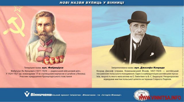 Вулицю Фабриціуса пропонують пере назвати в честь англійського письменника Джозефа Конрада, який відвідував маєтки польської шляхти на теренах Східного Поділля.