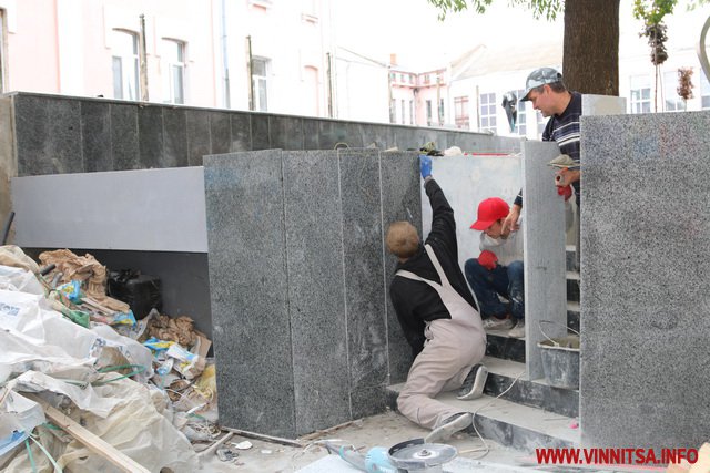 У Вінниці активно проводиться реконструкція на площі біля McDonald's. Тут вже через два дні має з’явитися композиція з Beatles та оновлена площа.